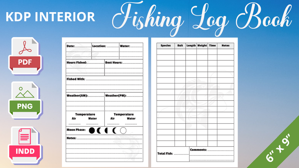 Fishing Log book , Editable KDP Interior Design - PDF, PNG & INDD - 6 x 9 Inches
