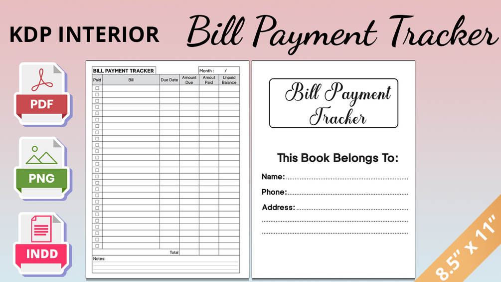 Bill Payment Tracker Book Editable Interior Design - PDF, PNG & Editable INDD File - 8.5 x 11 Inches