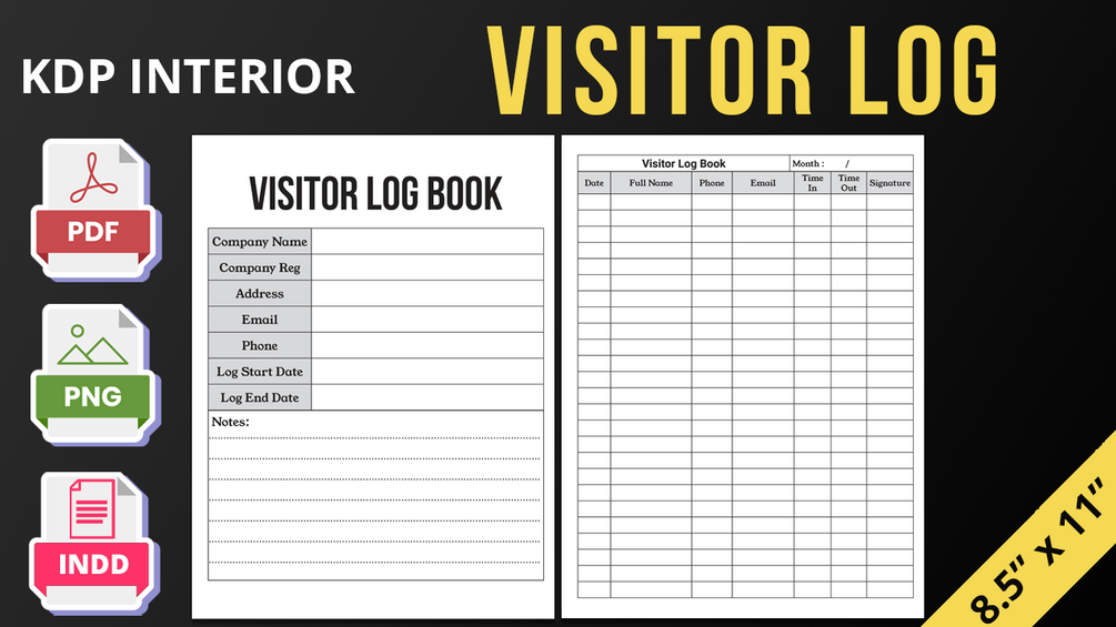 Visitor Log - Editable KDP Interior Design - PDF, PNG & INDD - 8.5 x 11 Inches